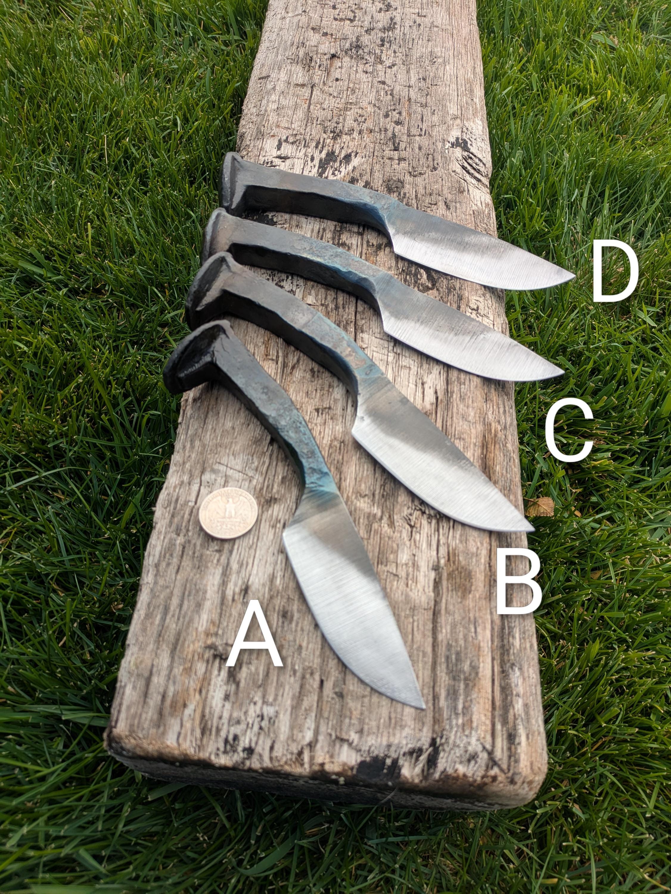 These knives are made in batches, and will have slight variation from one to the next. When more than one is available, they will be assigned a letter so you may choose the one you'd like.
